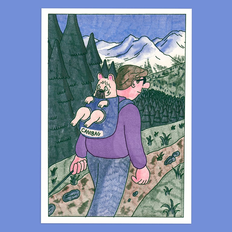 Pack comprenant le livre "Chienchien le chien a disparu" paru aux éditions Microgram en 2023 ainsi qu'un print riso A4, édité spécialement pour le second tirage du livre.
